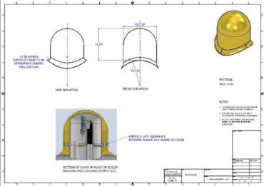Fig1. Drawing for the dome cover manufacture. Fig2. A reminder of what they will look like when in position.